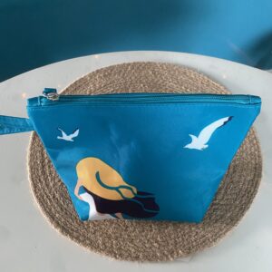 Trousse à maquillage isotherme bleu turquoise Yves Rocher neuve motifs femme et mouettes