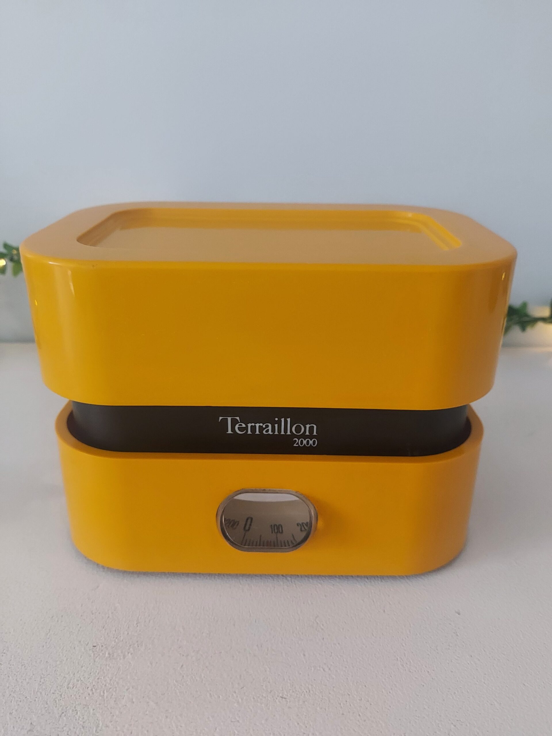 Balance de cuisine vintage Terraillon 2000 jaune moutarde années 70.