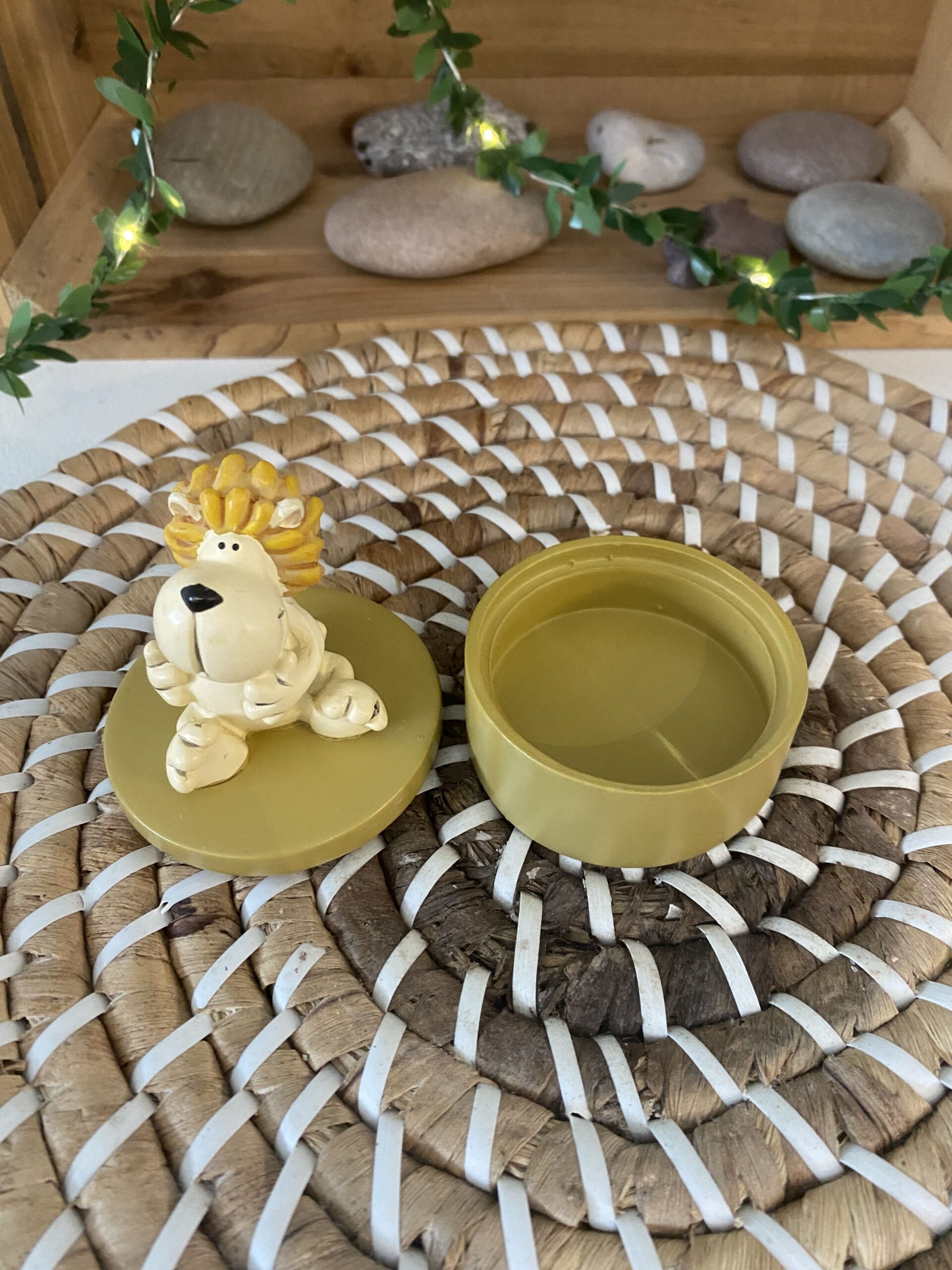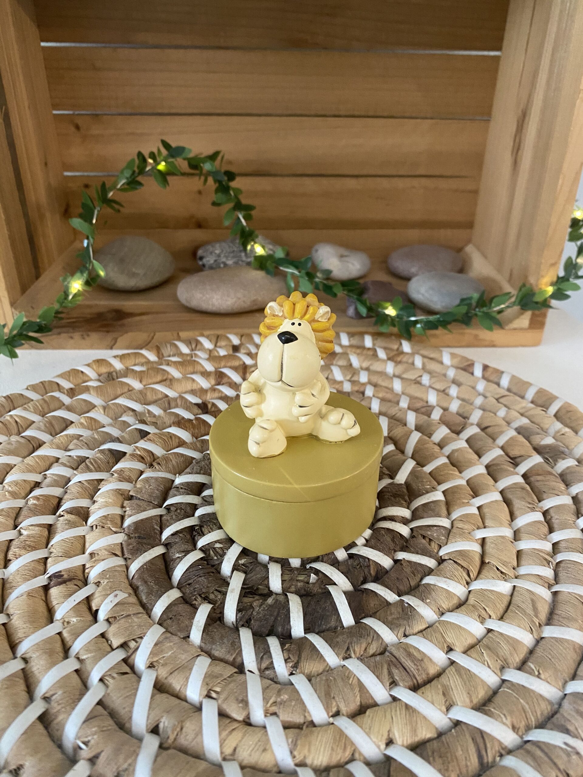 Boîte avec un lion dessus, en résine