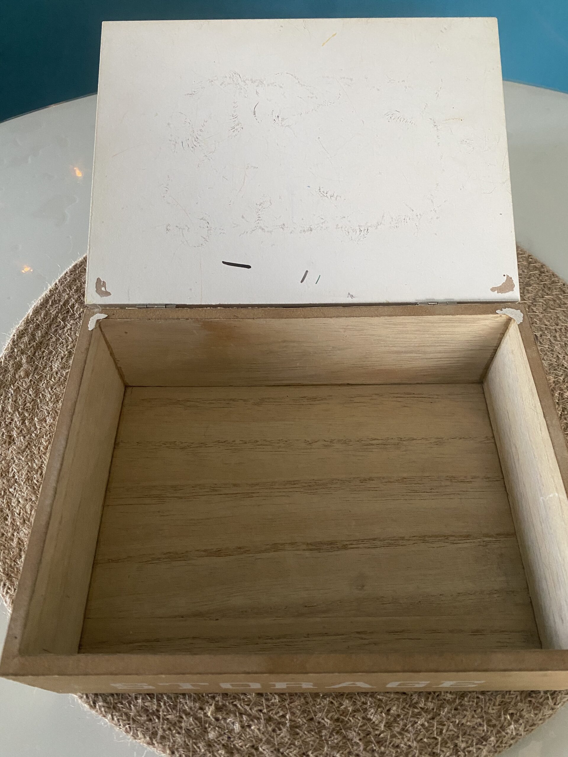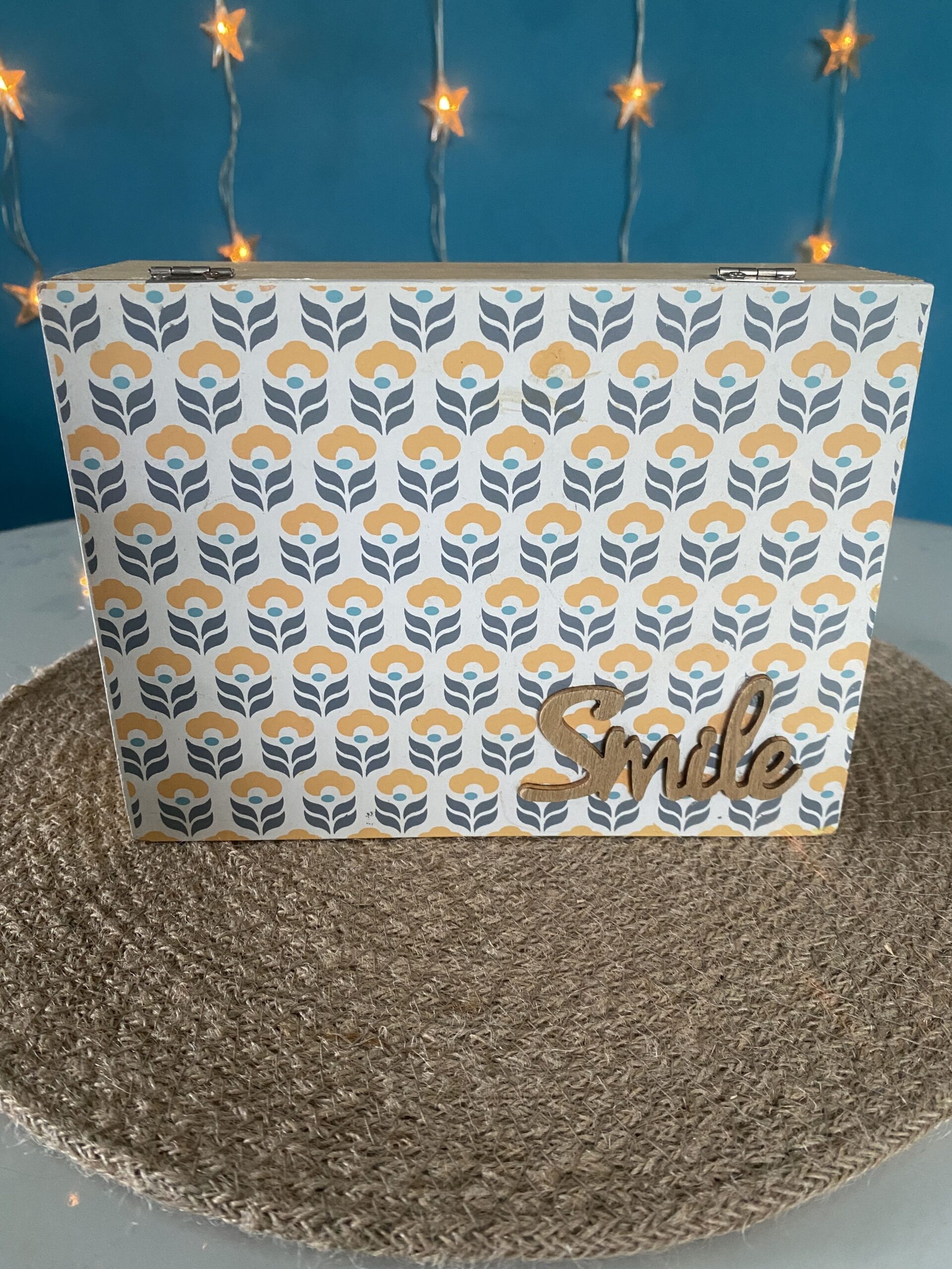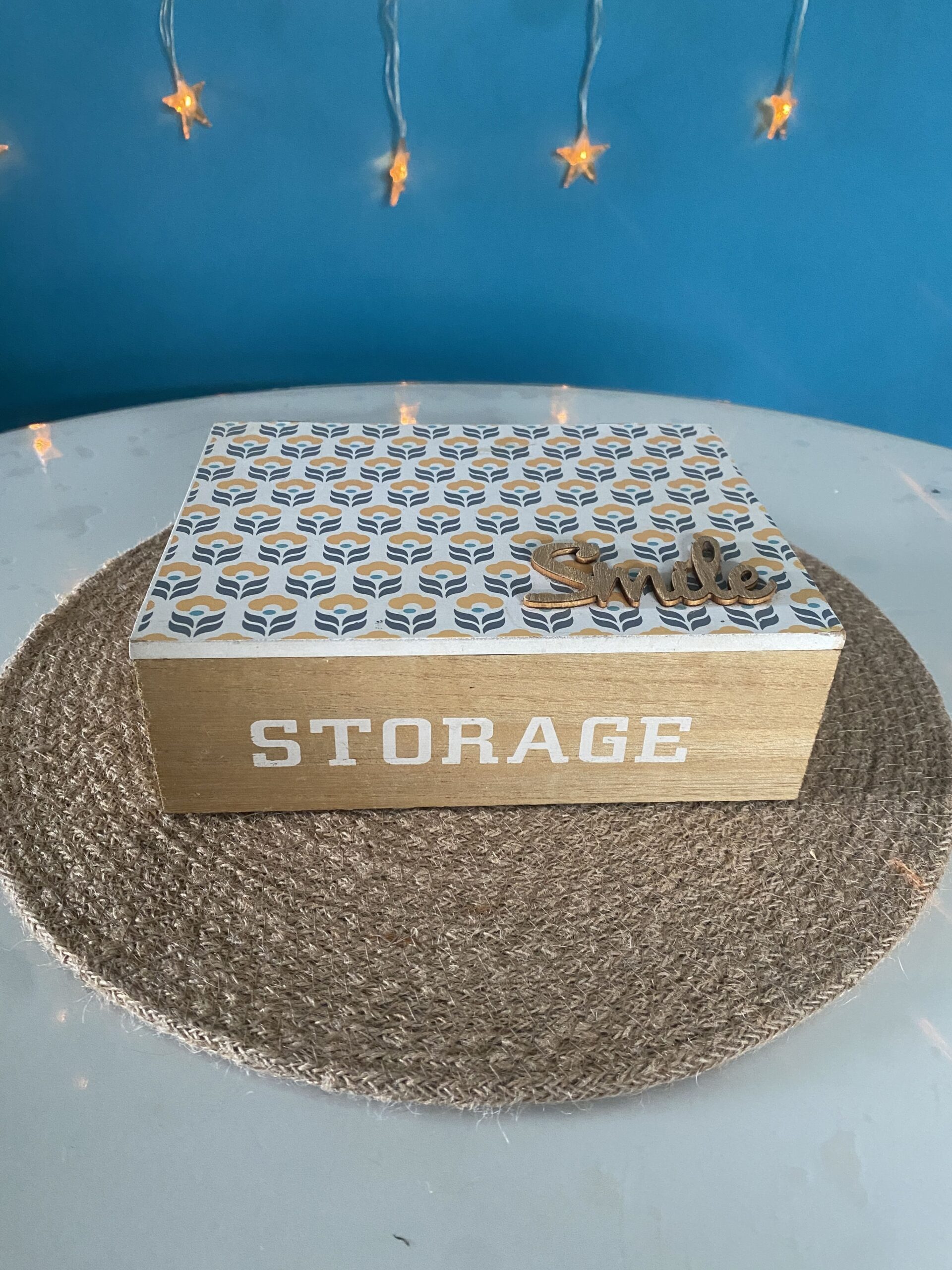 Boite décorative en bois style scandinave inscription en relief « smile » et inscription peinte « storage »