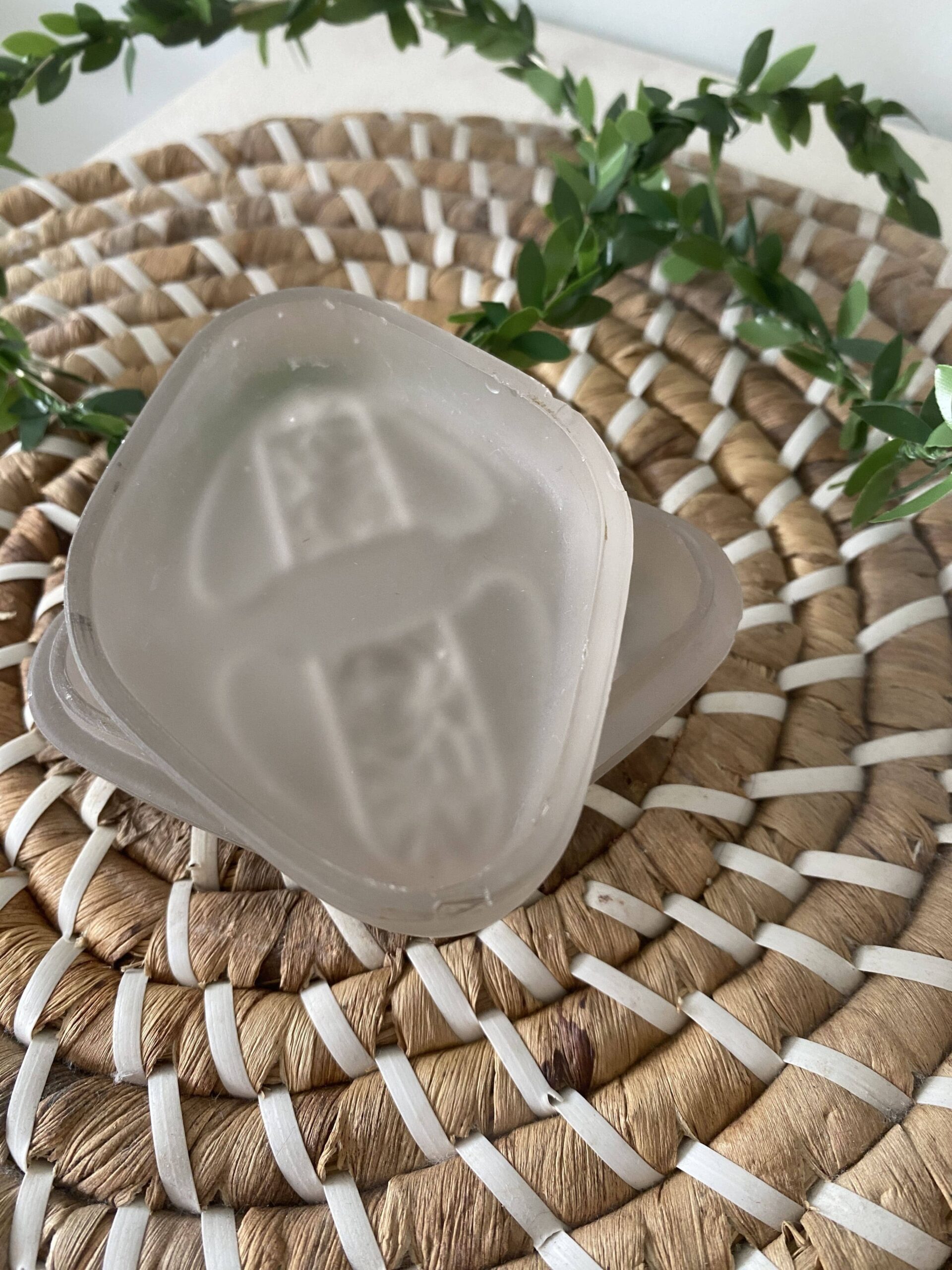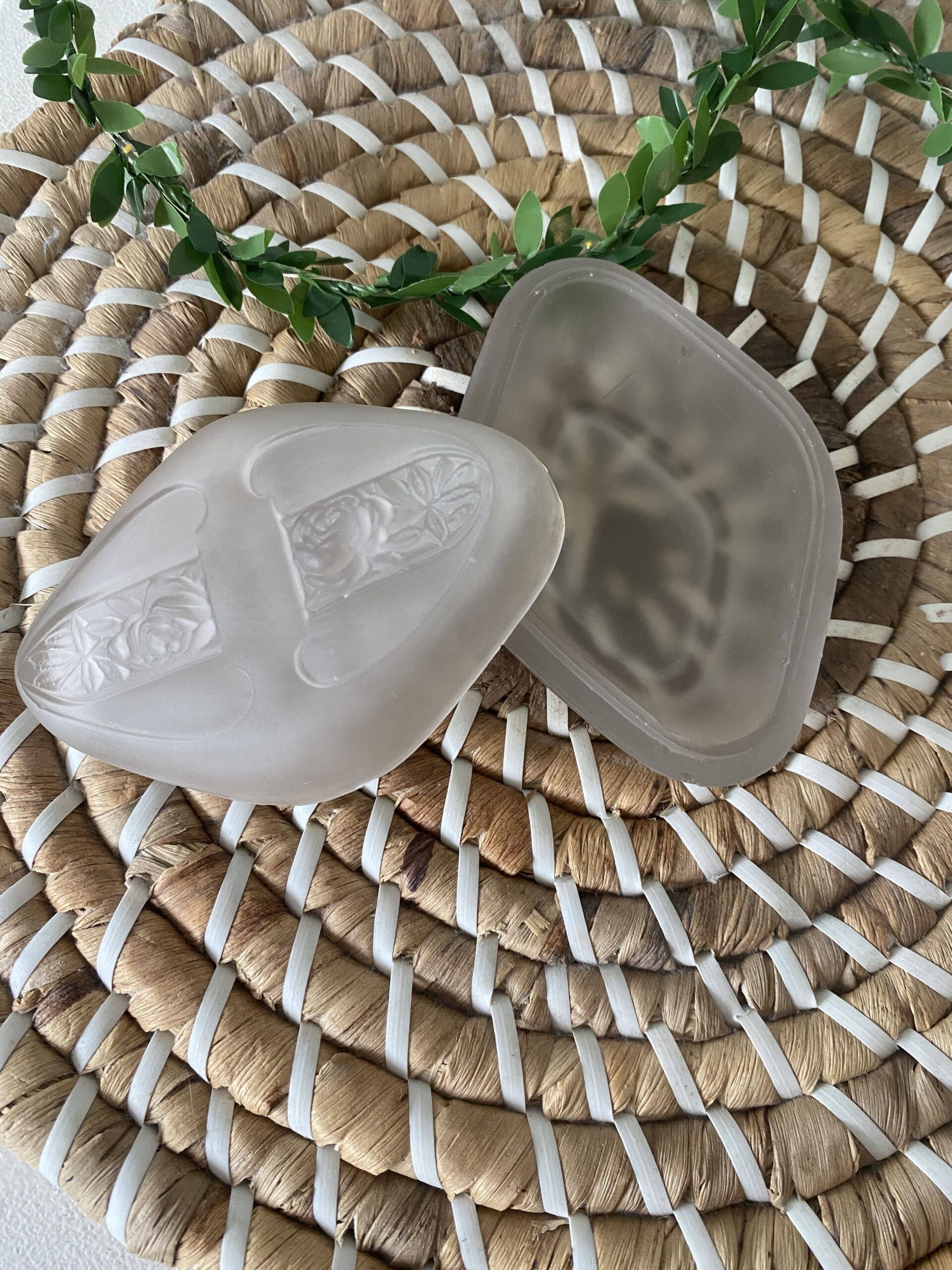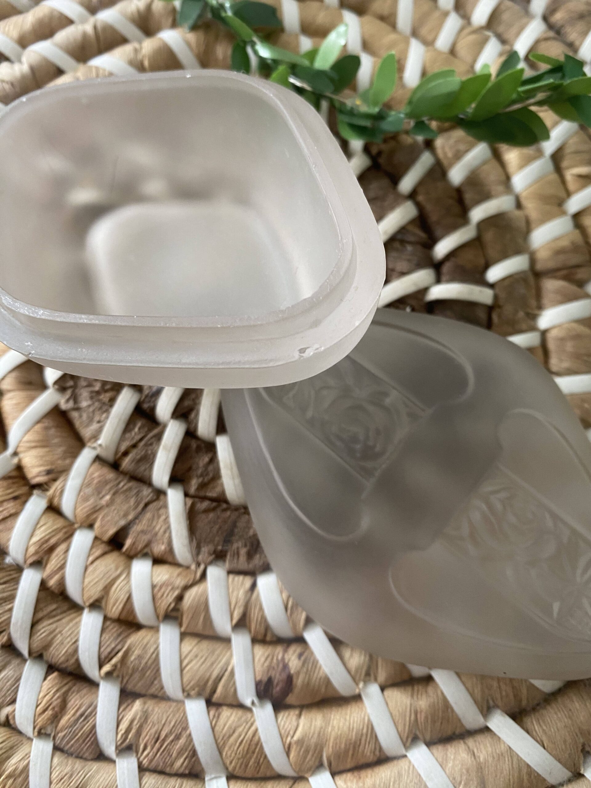 Magnifique petite boite en verre givré avec motif de roses sur le dessus