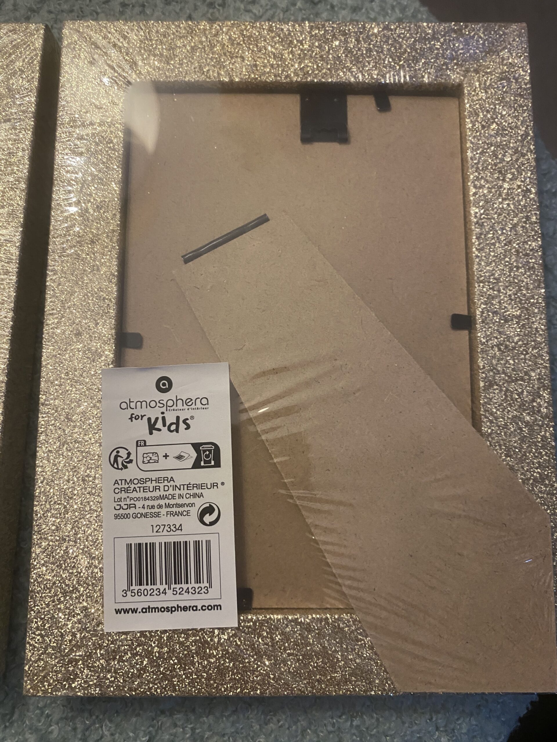 Lot de 2 cadres photos contours pailletés dorés 10×15 Atmosphera sous blister