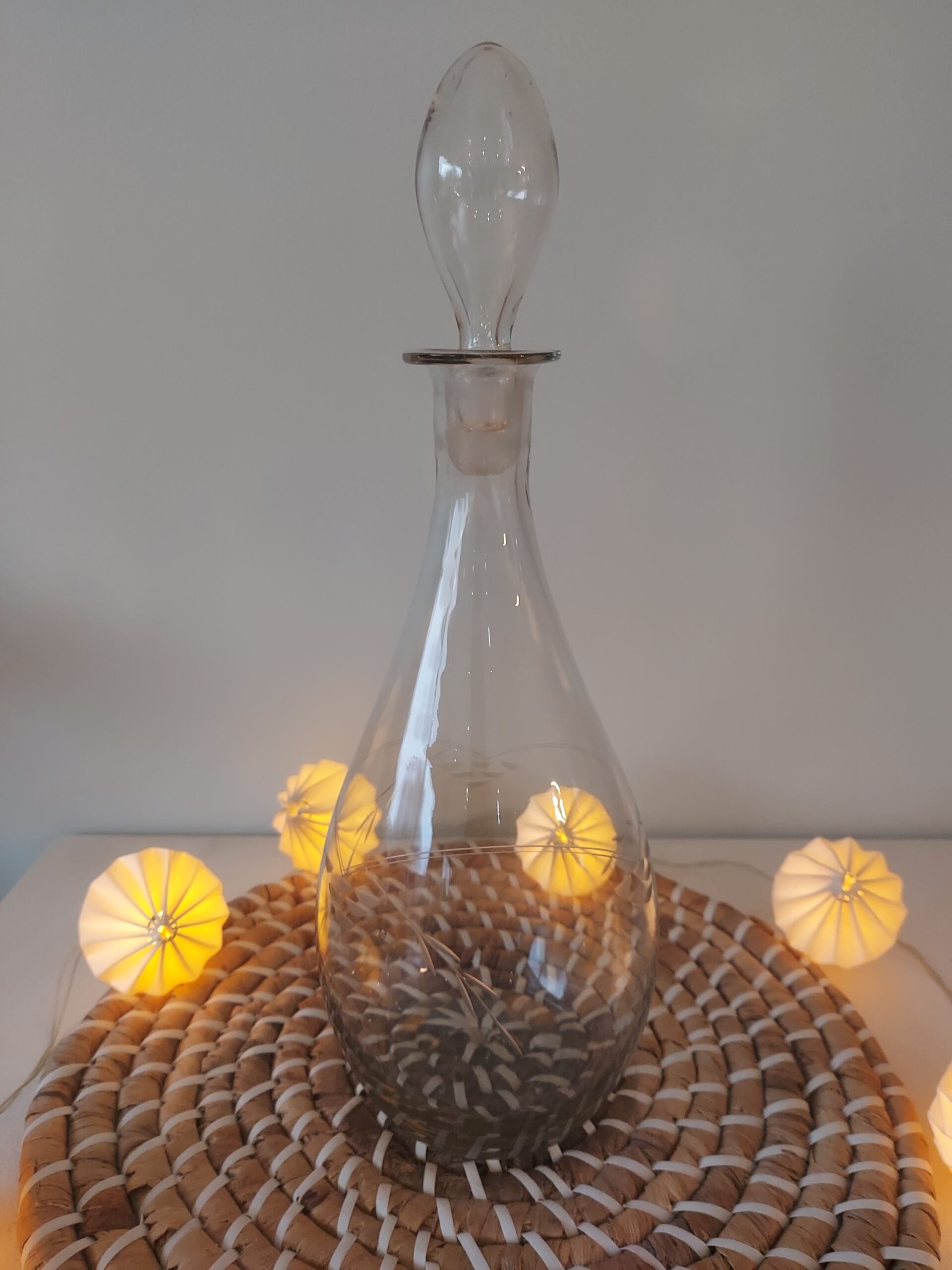 Carafe en verre motifs floraux vintage