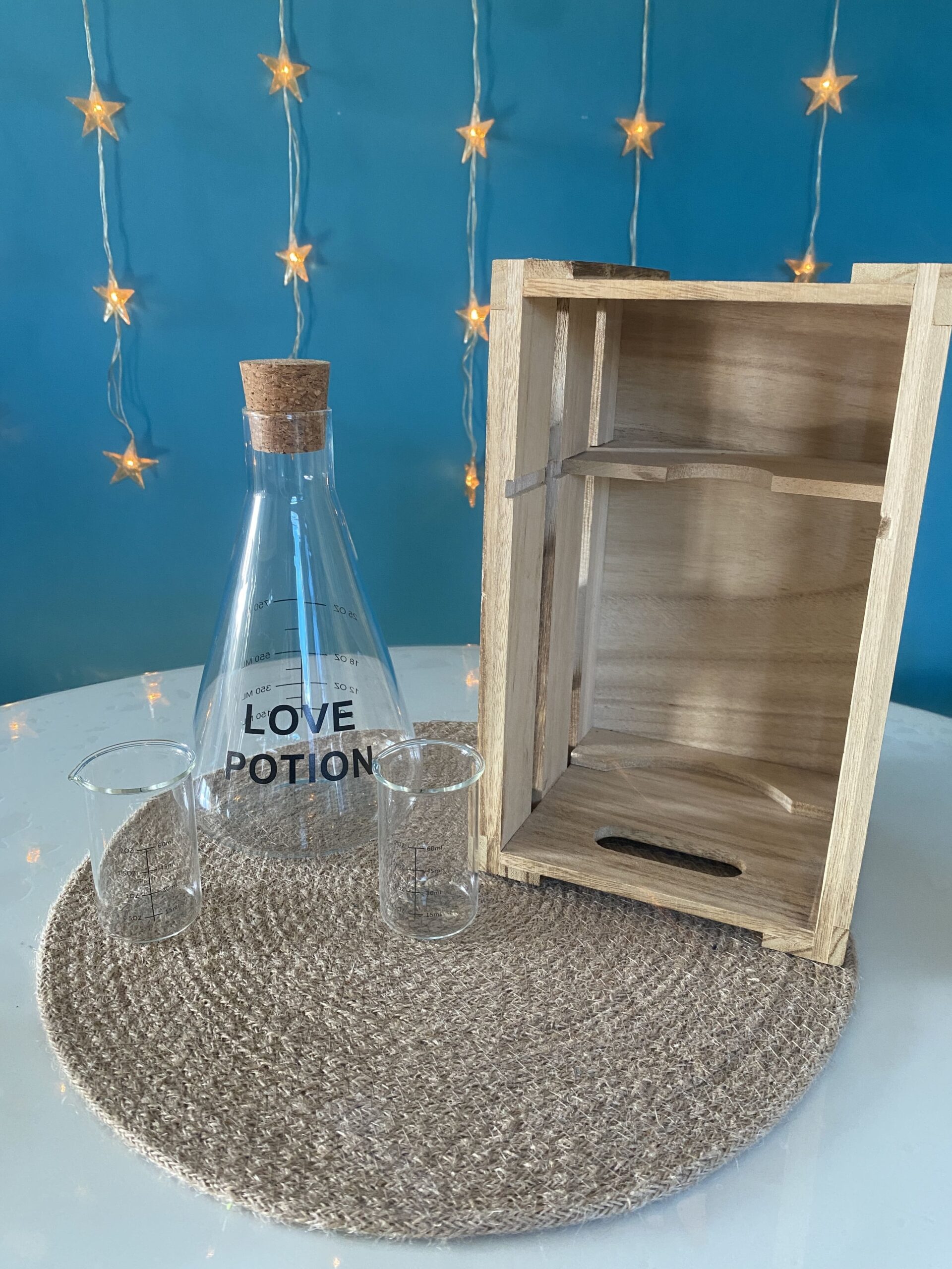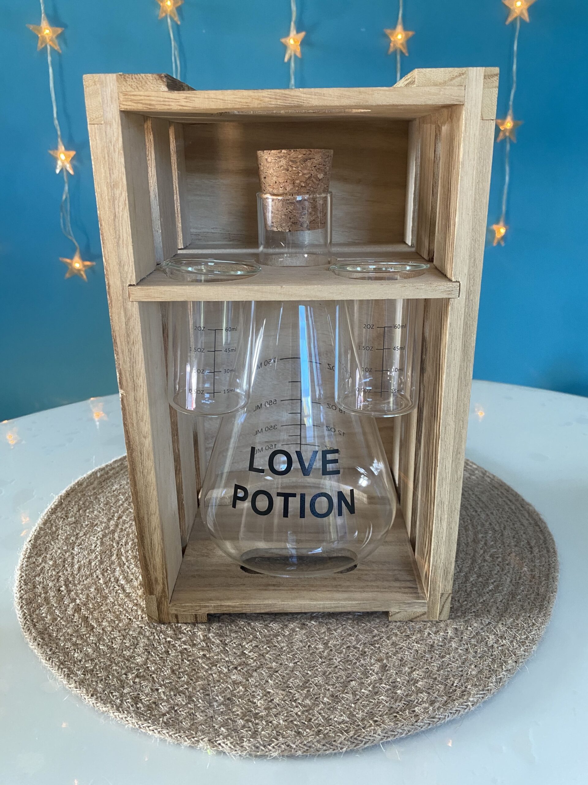 Très beau coffret Love Potion qui comprends une carafe jaugée style fiole ainsi que ses deux verres