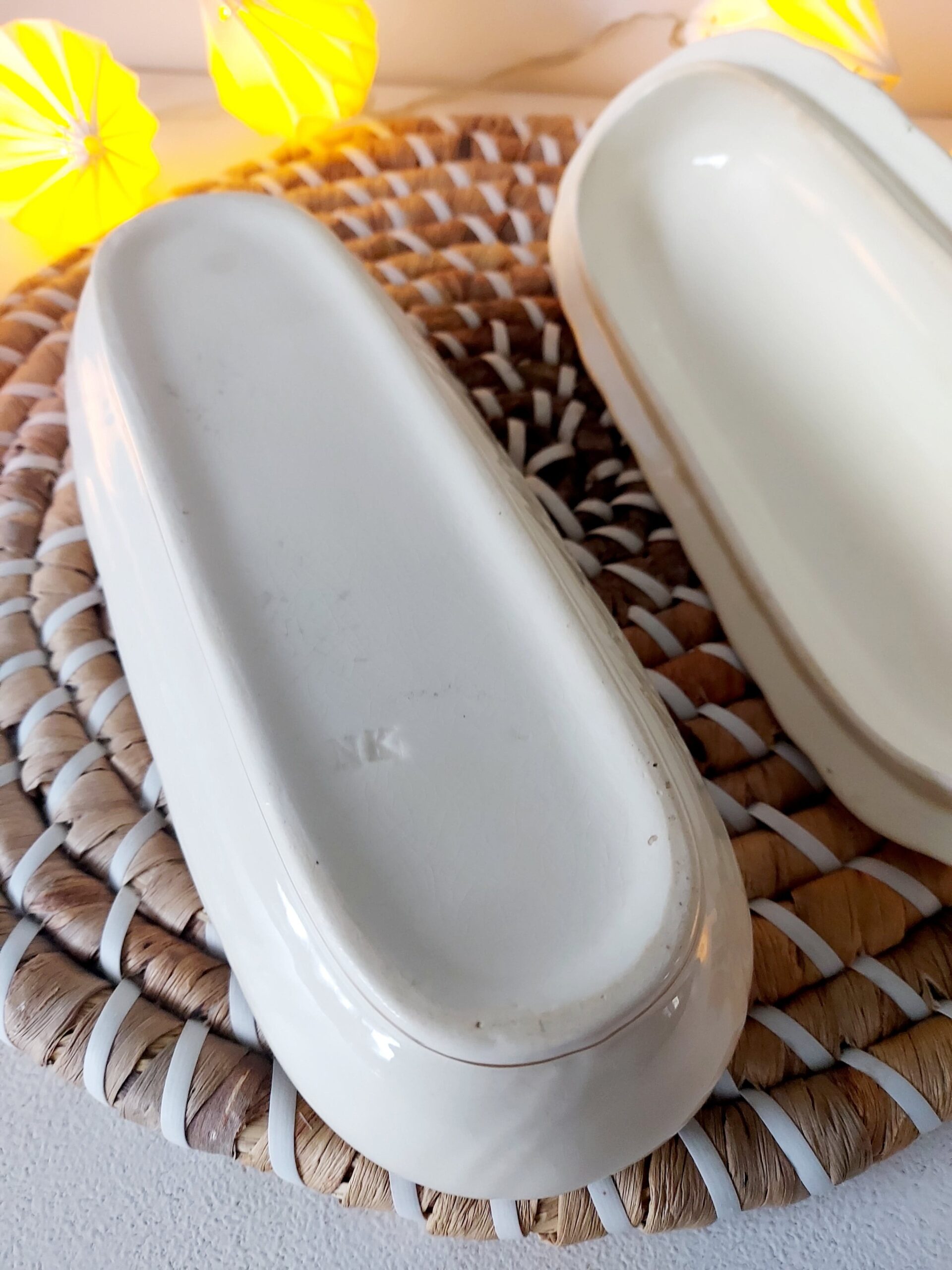 Coffret de toilette/porte-peignes en faïence ancien années 30/50 marqué N.K.