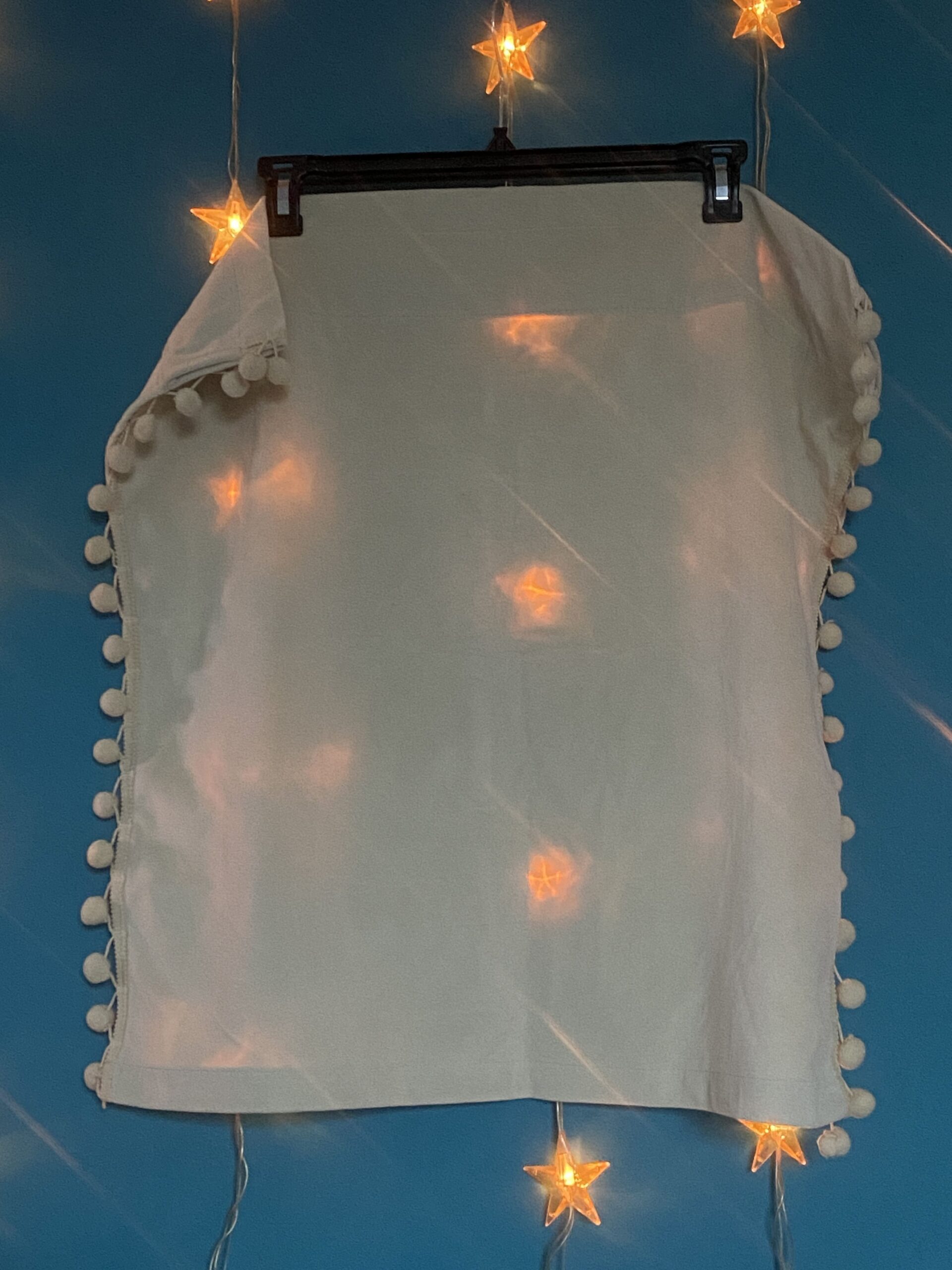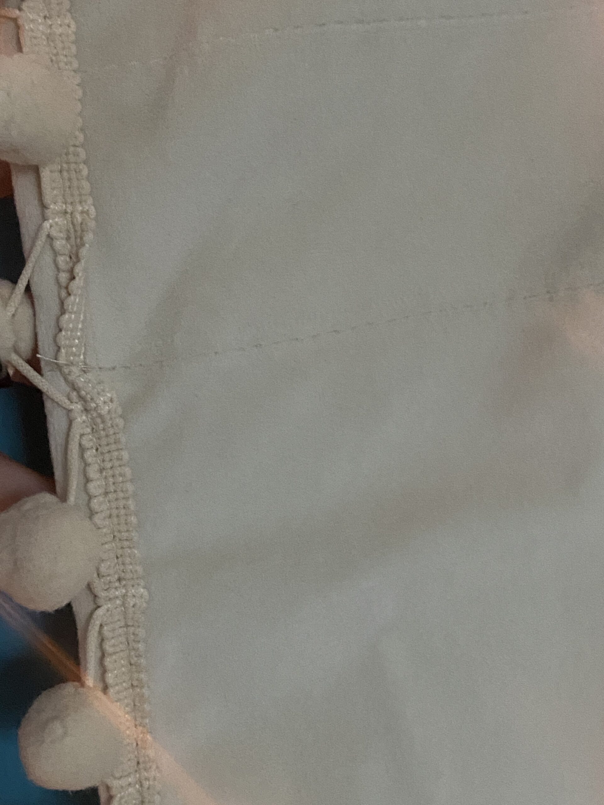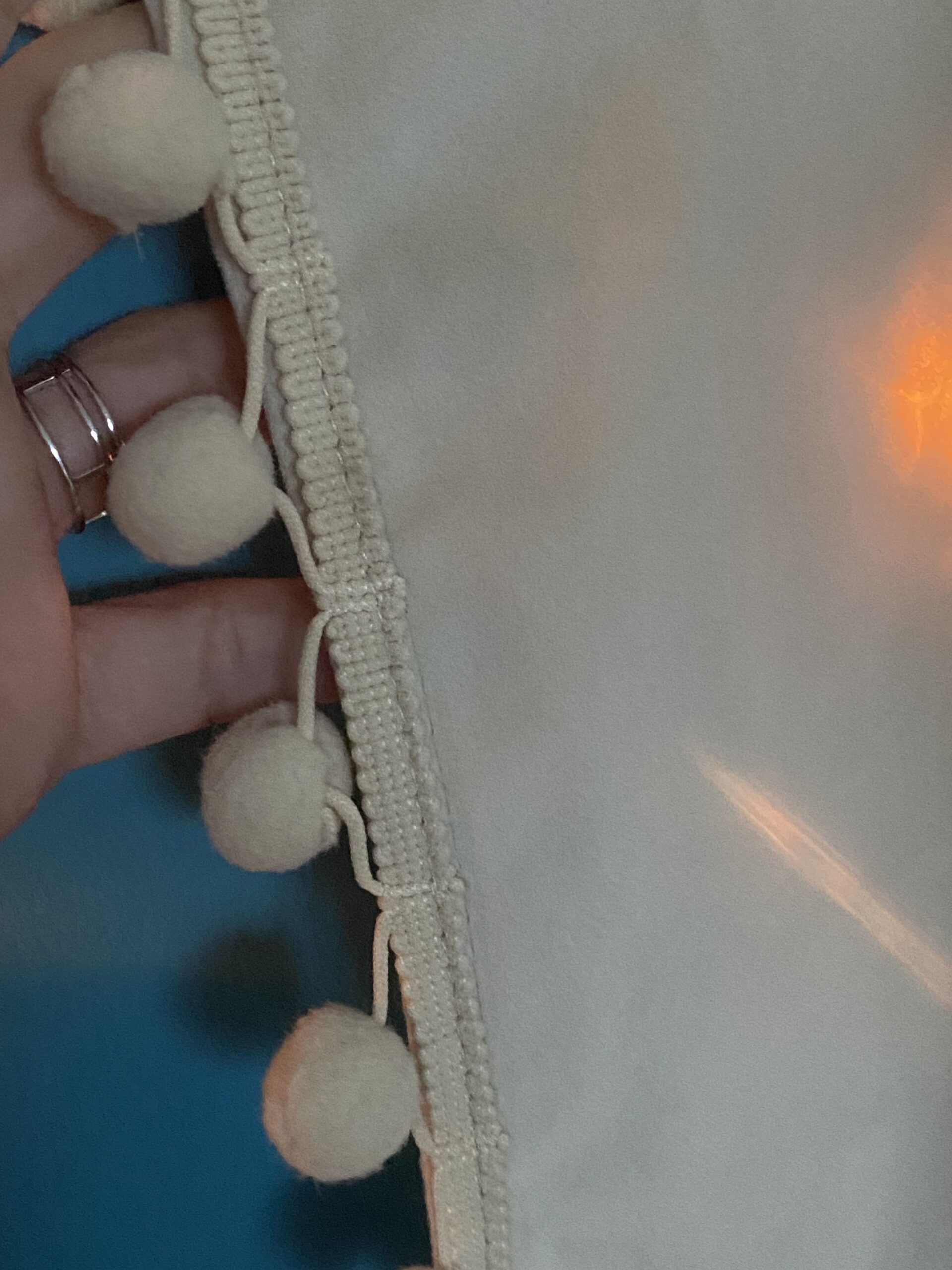 Deux petits rideaux occultants couleur ivoire en polyester avec pompons en velours 63×65