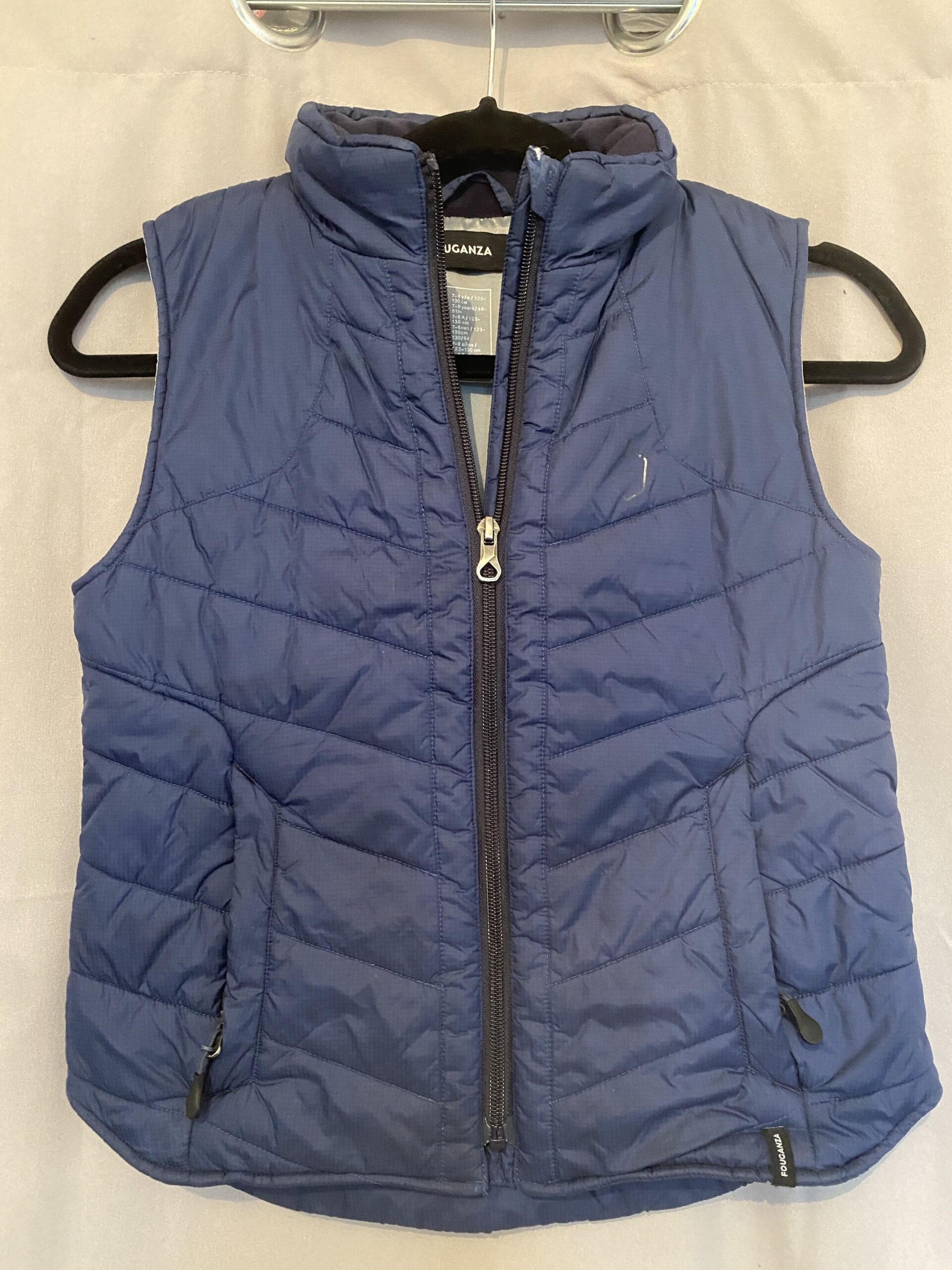 Doudoune enfant sans manches bleue de la marque Fouganza Decathlon taille 7/8 ans