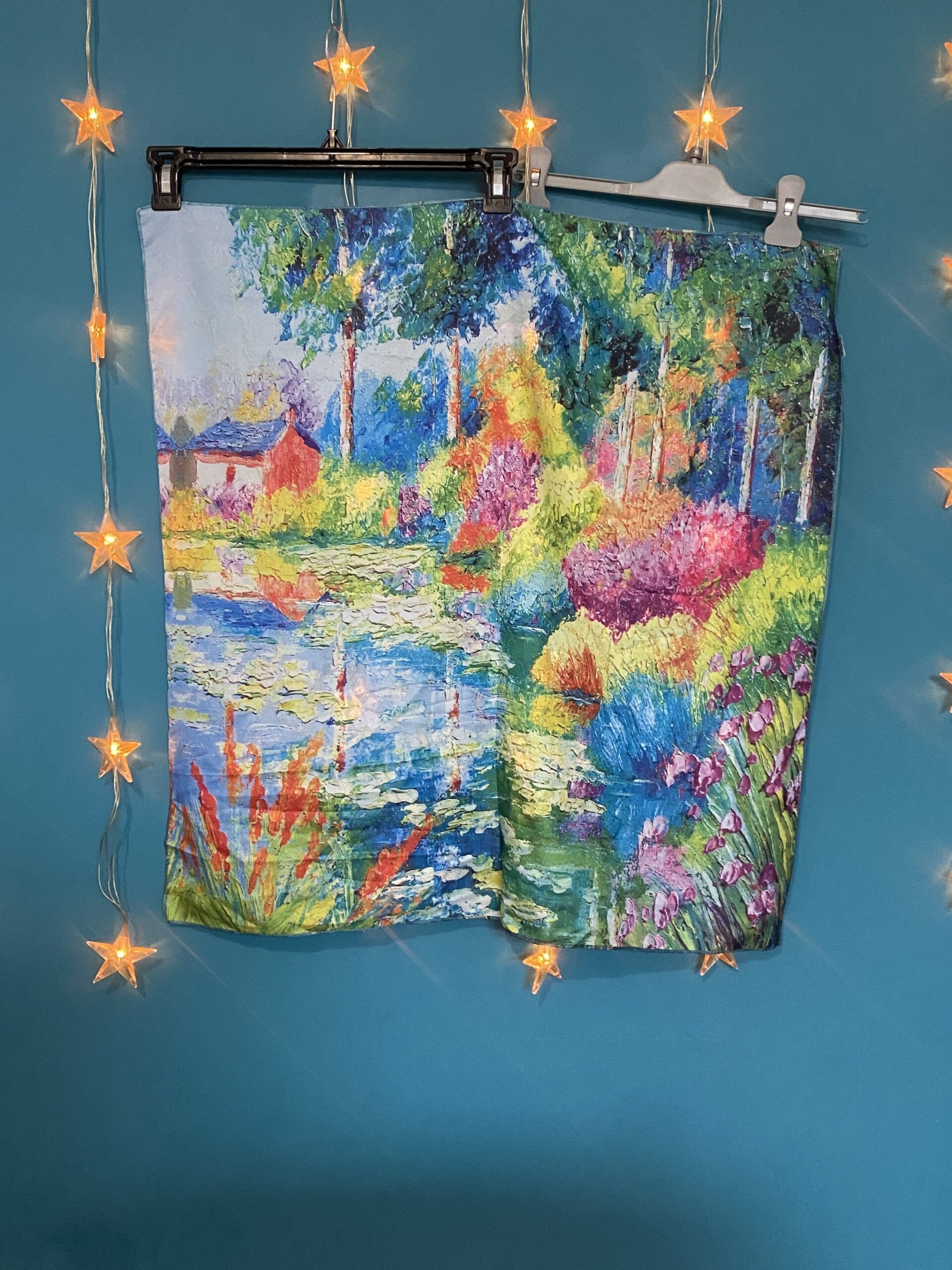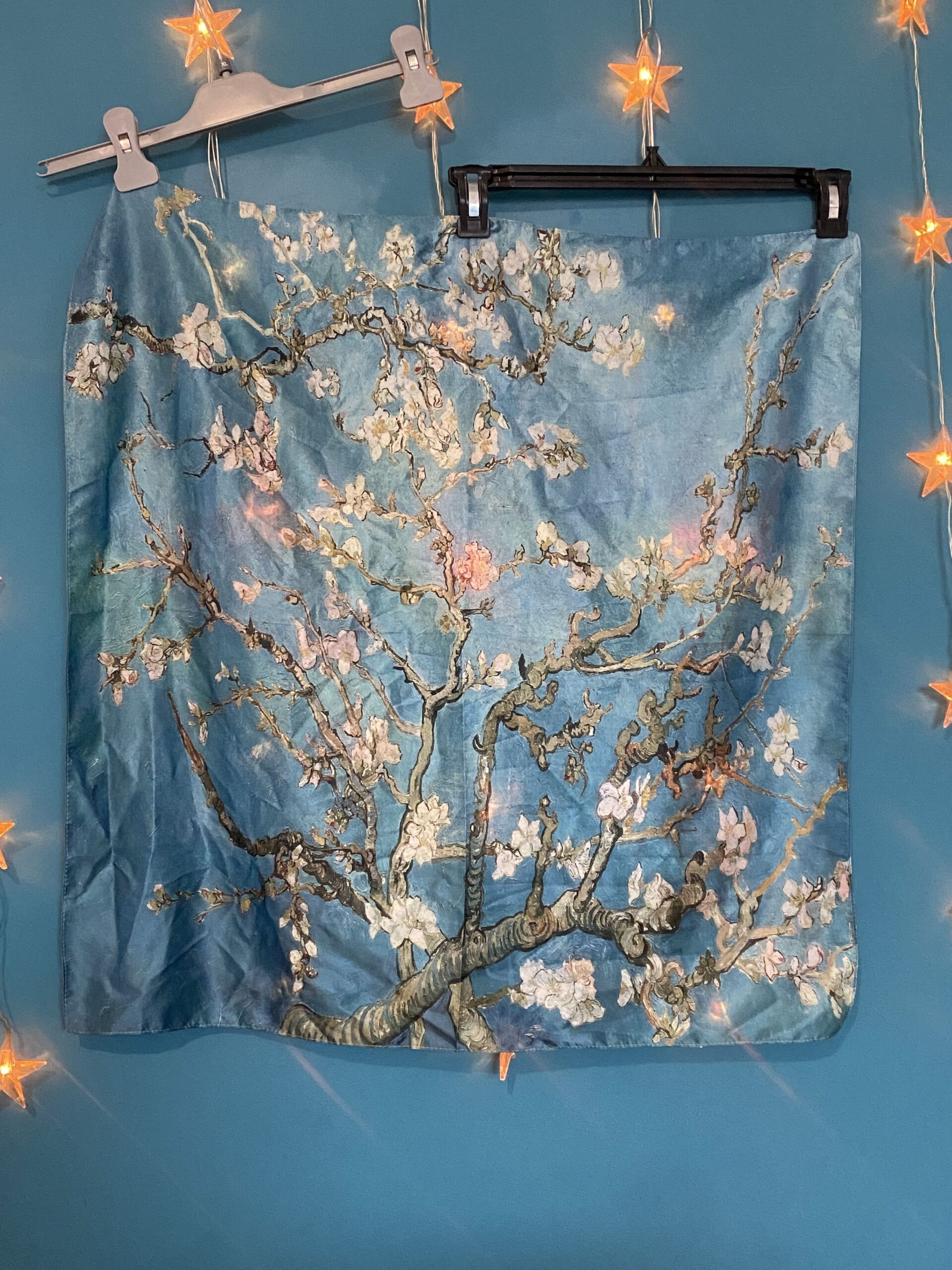 Foulard léger deux côtés différents, une maison au bord du lac et branches d’amandiers en fleurs de Van Gogh 70×70