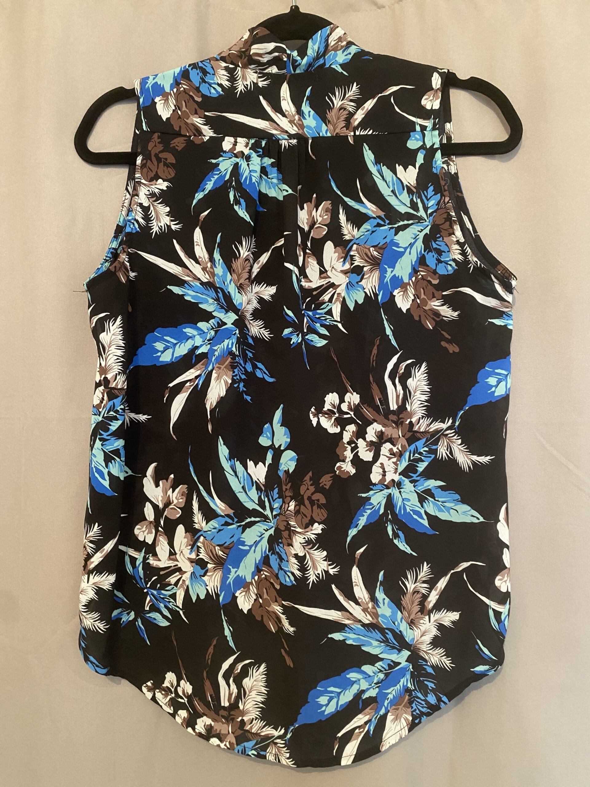 Jolie haut sans manche avec fleurs bleu , crème et marron