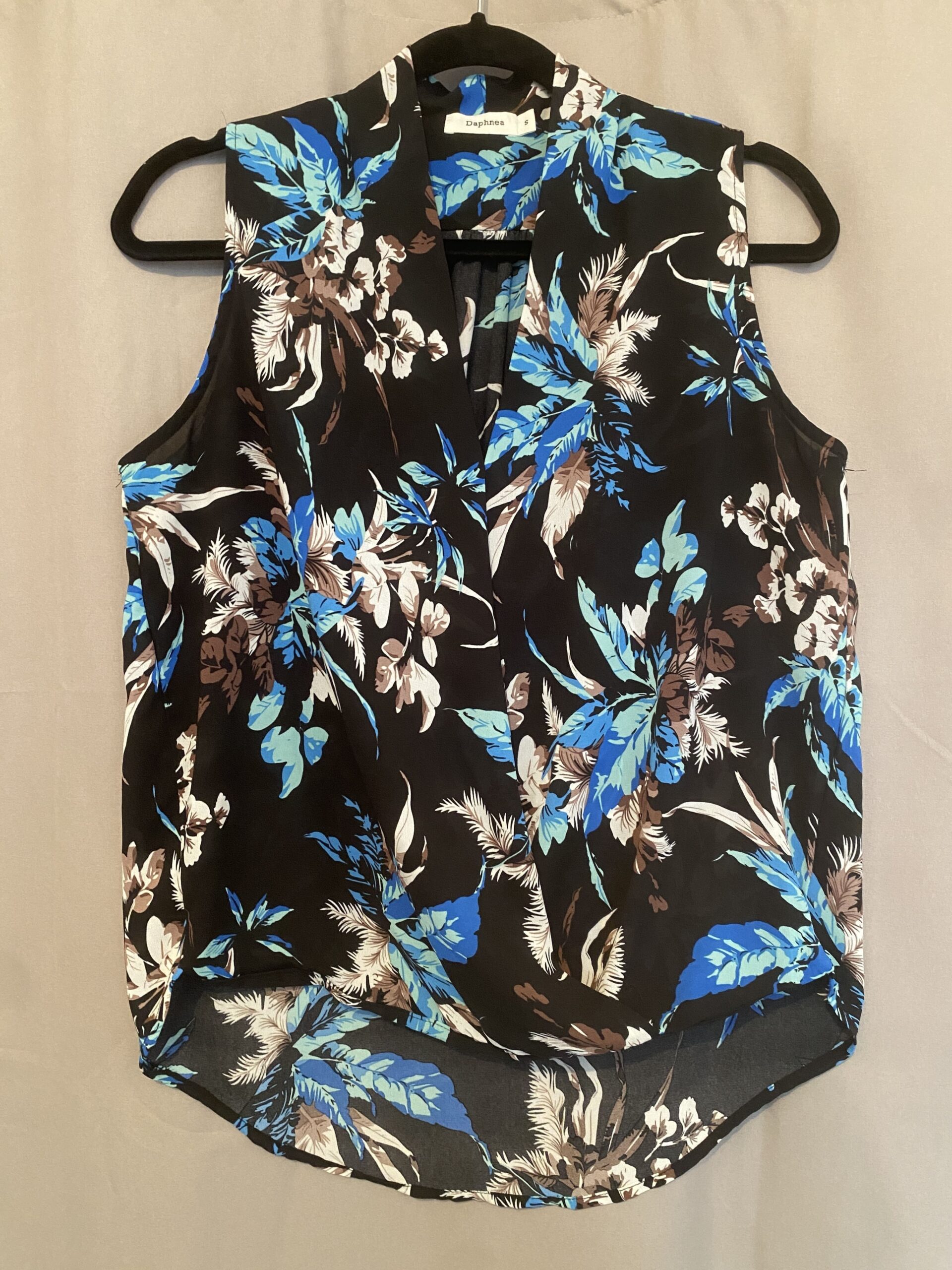 Haut sans manche noir fin avec motif fleurs Daphnea taille S