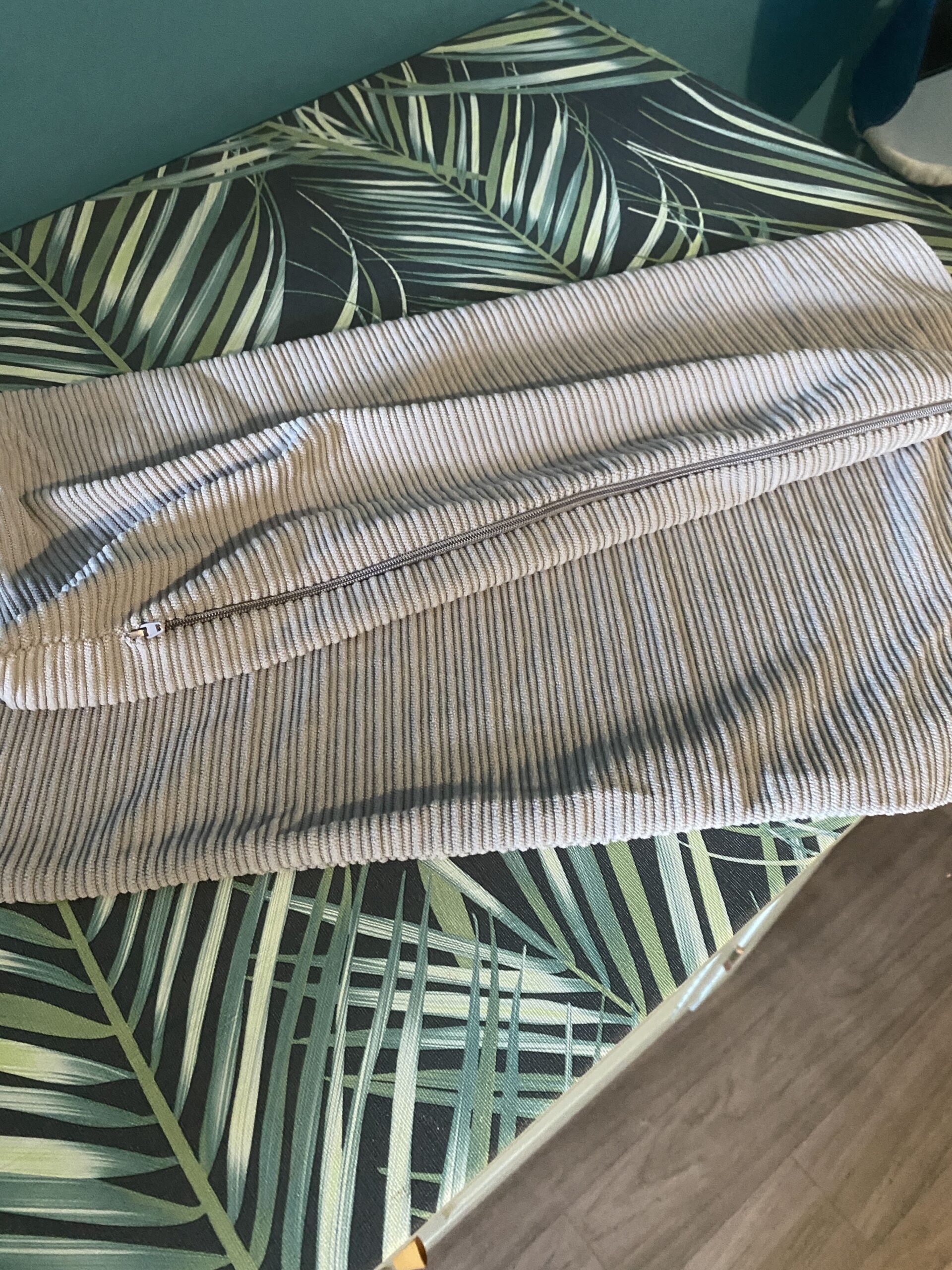 Housse de coussin gris clair neuve 45×45
