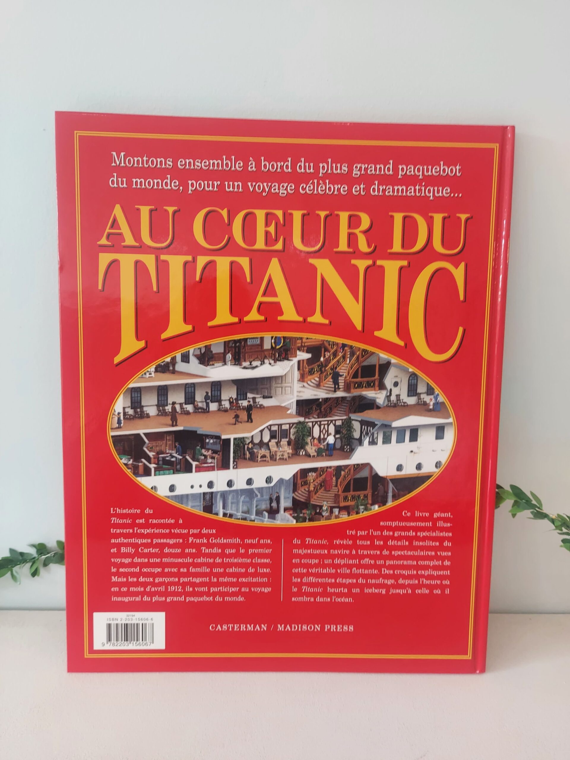L’histoire du Titanic est racontée à travers l’expérience vécue par deux authentiques passagers : Frank Goldsmith, neuf ans, et Billy Carter, douze ans. Tandis que le premier voyage dans une minuscule cabine de troisième classe, le second occupe avec sa famille une cabine de luxe. Mais les deux garçons partagent la même excitation en ce mois d’avril 1912, ils vont participer au voyage inaugural du plus grand paquebot du monde. Ce livre géant, somptueusement illustré par l’un des grands spécialistes du Titanic, révèle tous les détails insolites du majestueux navire à travers de spectaculaires vues en coupe ; un dépliant offre un panorama complet de cette véritable ville flottante. Des croquis expliquent les différentes étapes du naufrage, depuis l’heure où le Titanic heurta un iceberg jusqu’à celle où il sombra dans l’océan.
