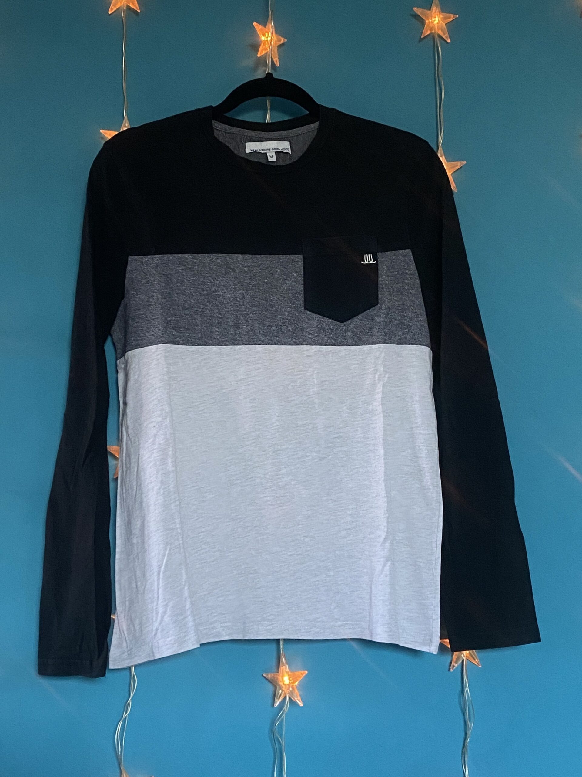 Polo manches longues tricolore noir, gris foncé, gris clair Jules taille M