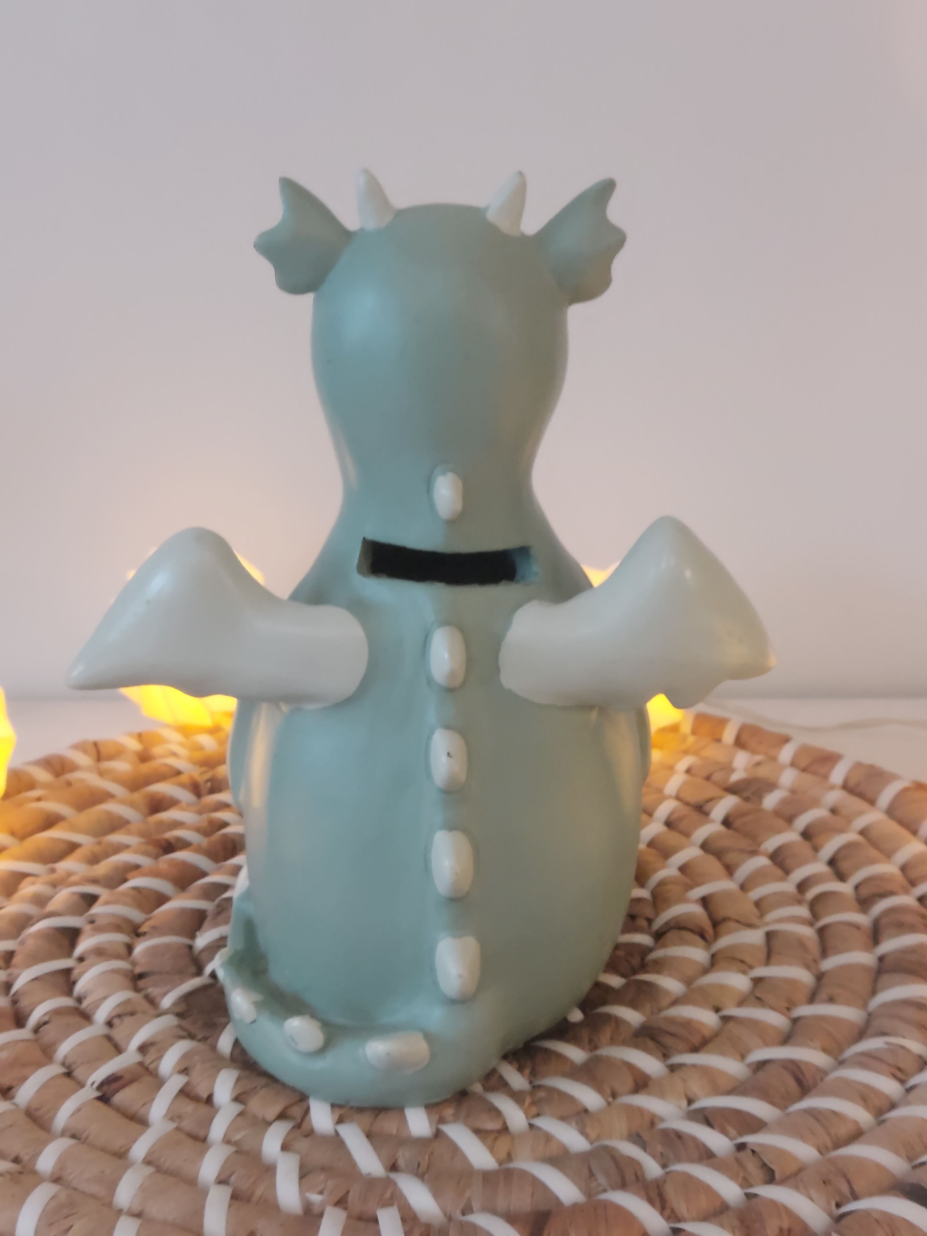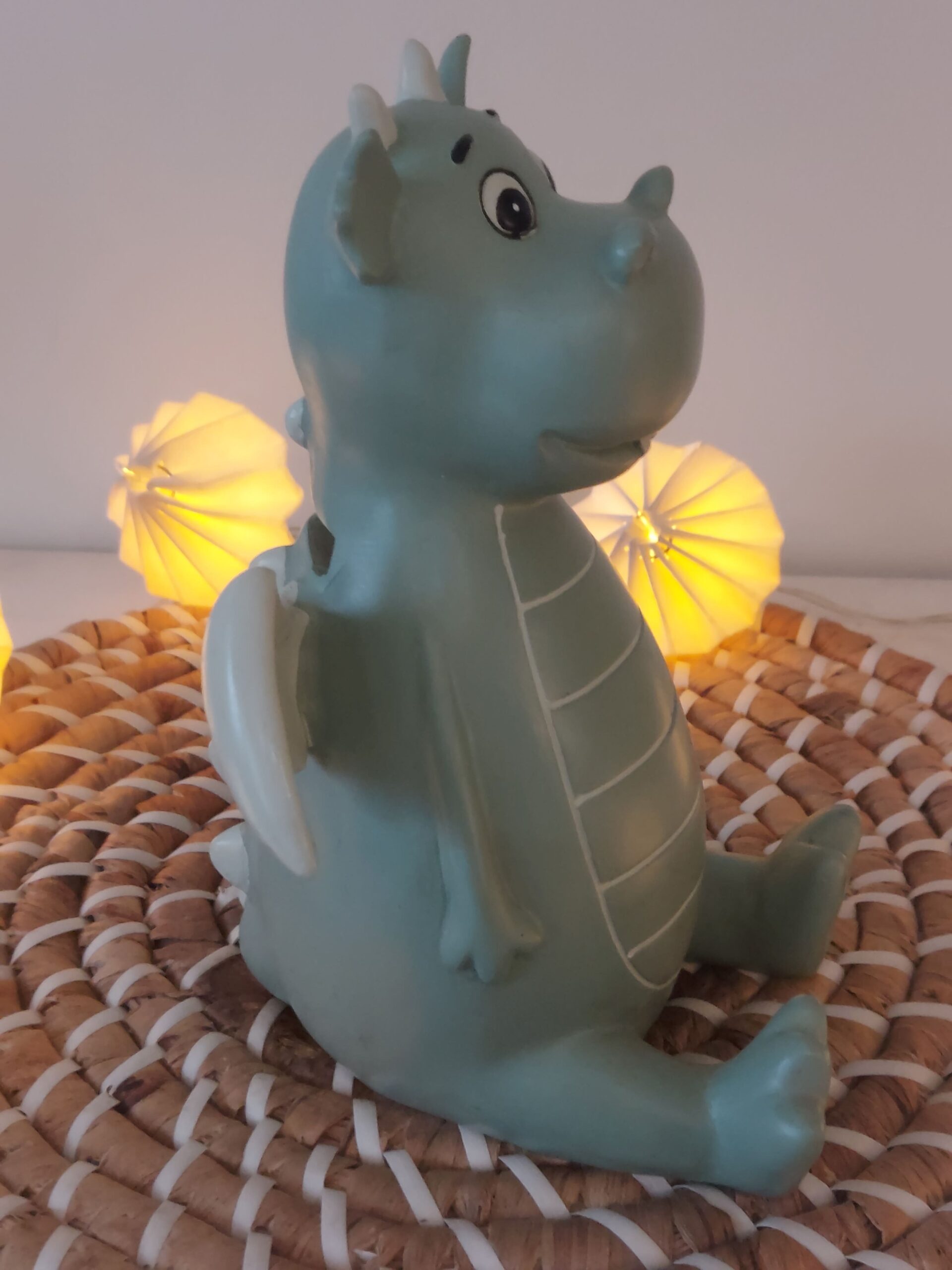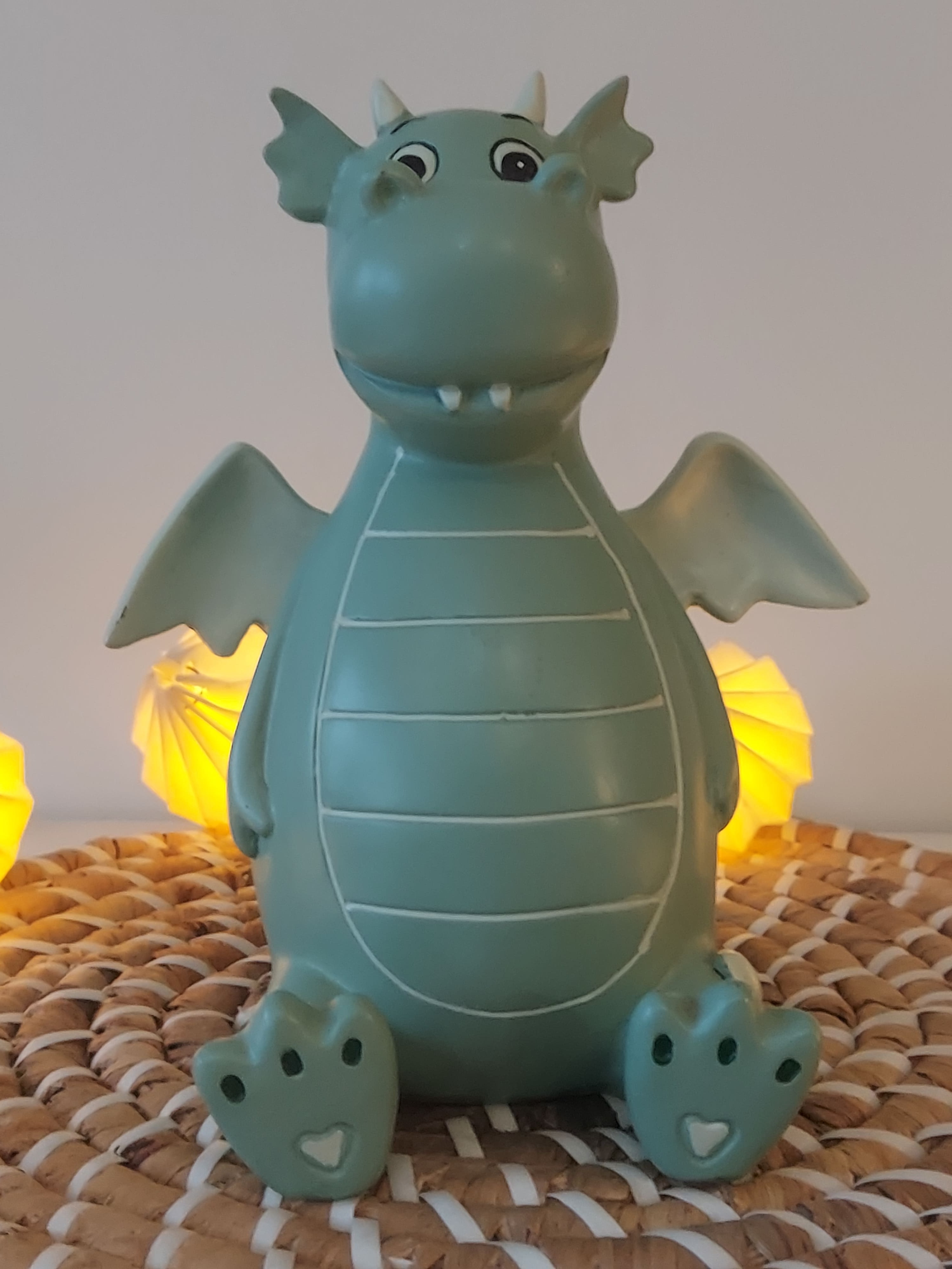 Tirelire Dragon en résine, couleur vert d’eau, déco enfant, fantastique/kawaii
