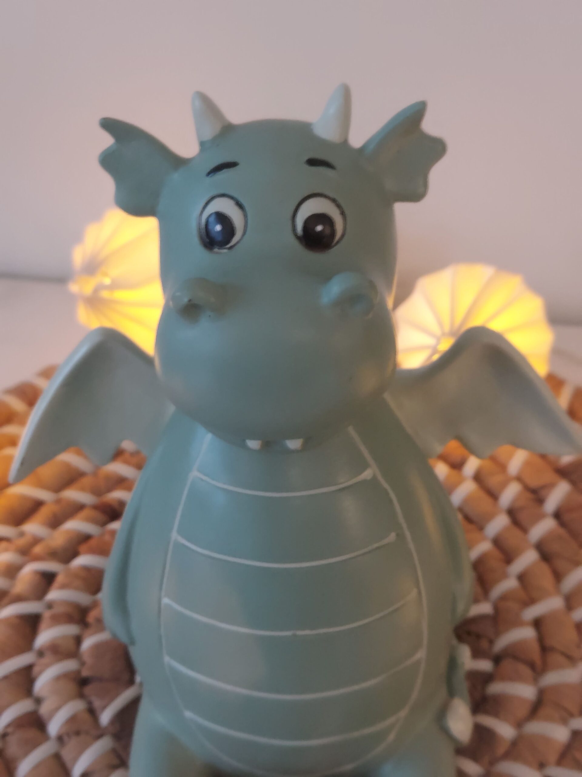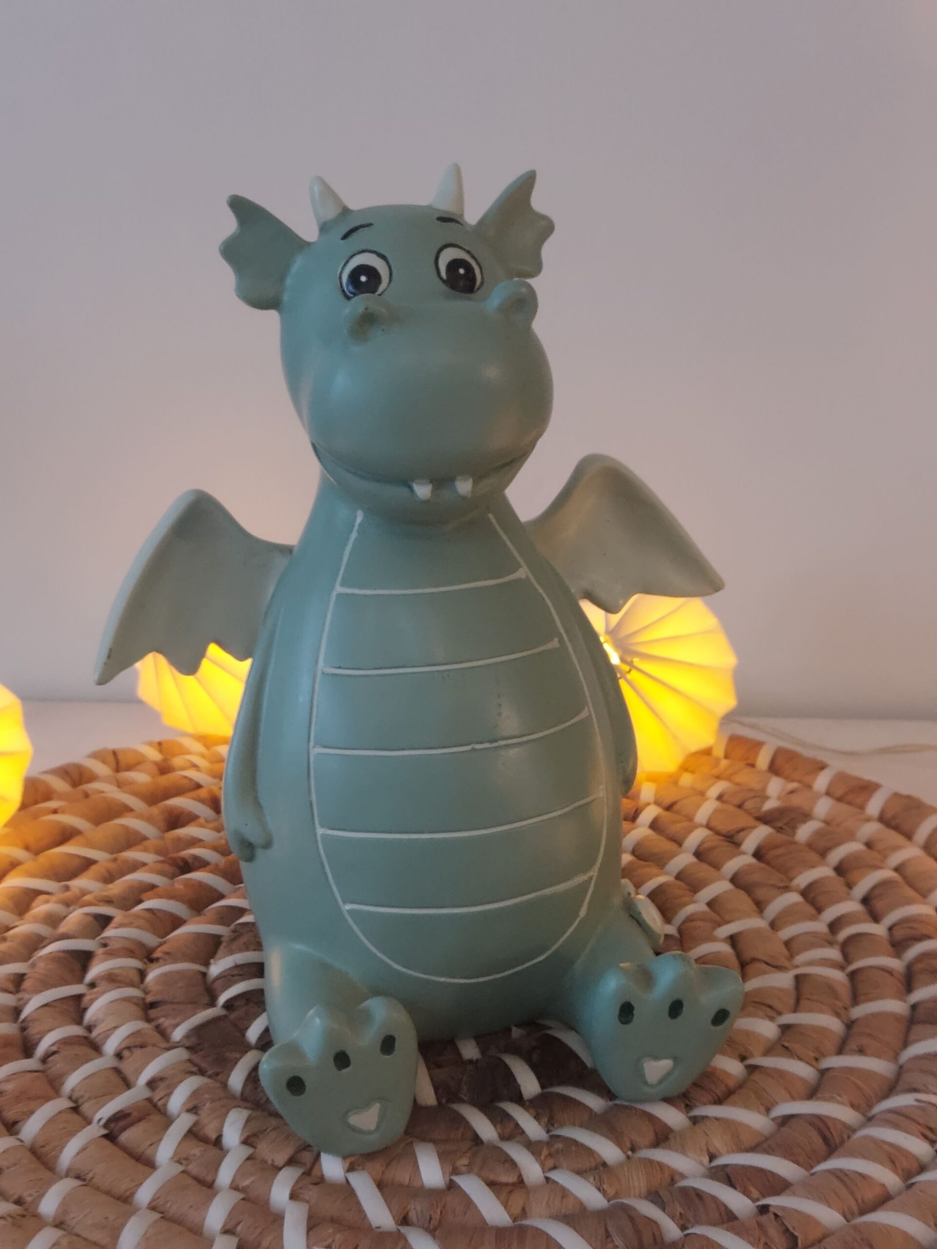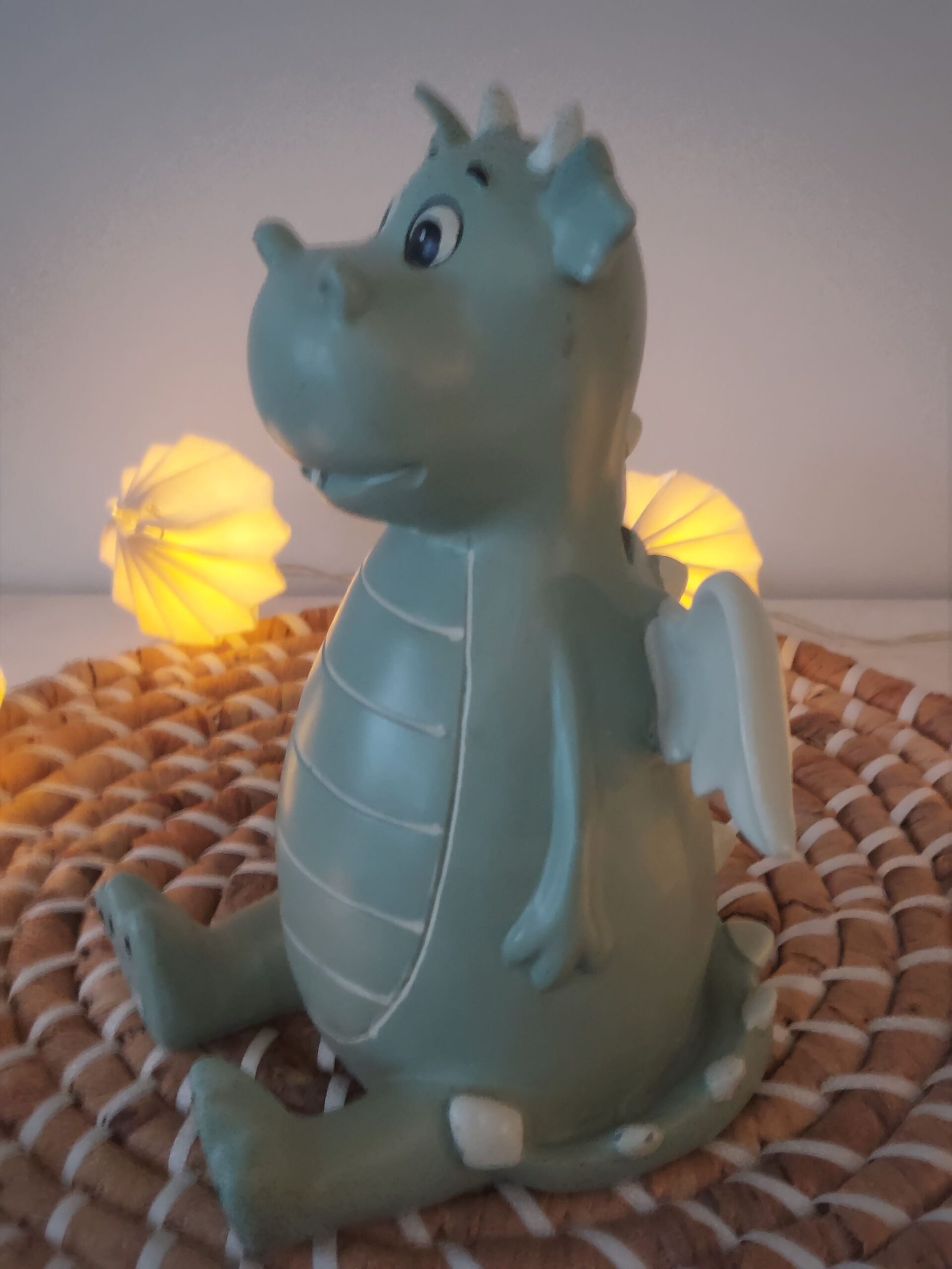Tirelire Dragon en résine, couleur vert d’eau, déco enfant, fantastique/kawaii