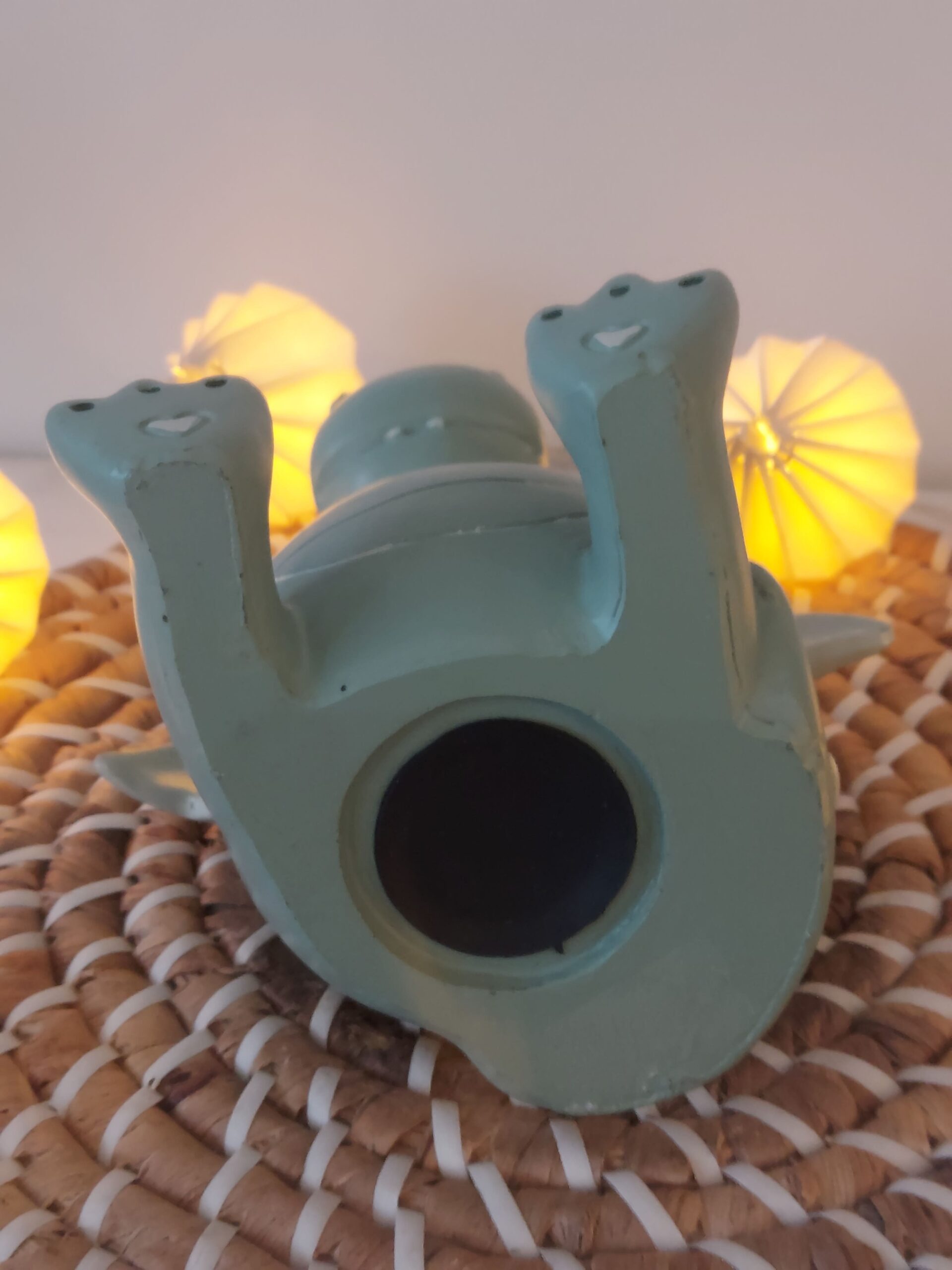 Superbe tirelire enfant, en forme de Dragon vert d’eau en résine. Style kawaii, fantastique.